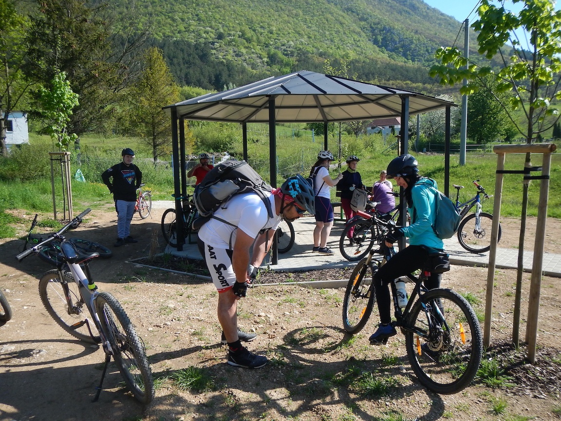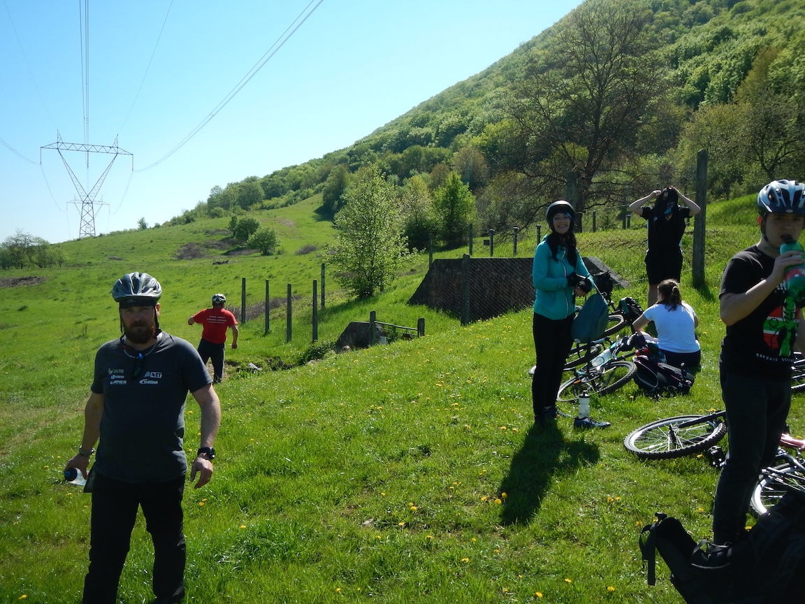 A találka reggel 9-kor volt betervezve a FEJ patak forrásnál Görgőn. Persze ahogy a Görgőeikhez illik, nem voltunk ott időben. Sebaj, azért szép számban összegyűltünk. 11-en el is indultunk a tavak között, ahol még 2-ten csatlakoztak hozzánk. Inned tovább folytattuk utunkat Körtvélyes felé, ahol csatlakoztunk a sárga bicajos útvonalra a határig. Ez volt az egyetlen komolyabb emelkedés a pályán. Szerencsésen el értük a határt, ahonnan Derenk már csak egy köpésre volt. Rövid ismerkedés után a Derenk múltjával, bele is vágtunk a szalonnasütésbe, no meg a pihenésbe. Kaja után 2 oszlott a csapat. Az első fele maradt lustálkodni Derenken. A másik aktívabb fele, elindult felfedezni a Szádvár romjait. Mikor már mindent megnéztünk, nyomtunk egy kisseb downhilt, és megálltunk lusta barátainkért Derenken. Az úton hazafelé még próbára tettük technikai tudásunkat, egy defekt javítással. Sajna csak harmadszorra sikerült megjavítani. De azért javunkra szóljon, hogy 3 lyuk volt a belsőben. A napot egy megérdemelt hideg csapolt kofolával meg sörrel zártuk.