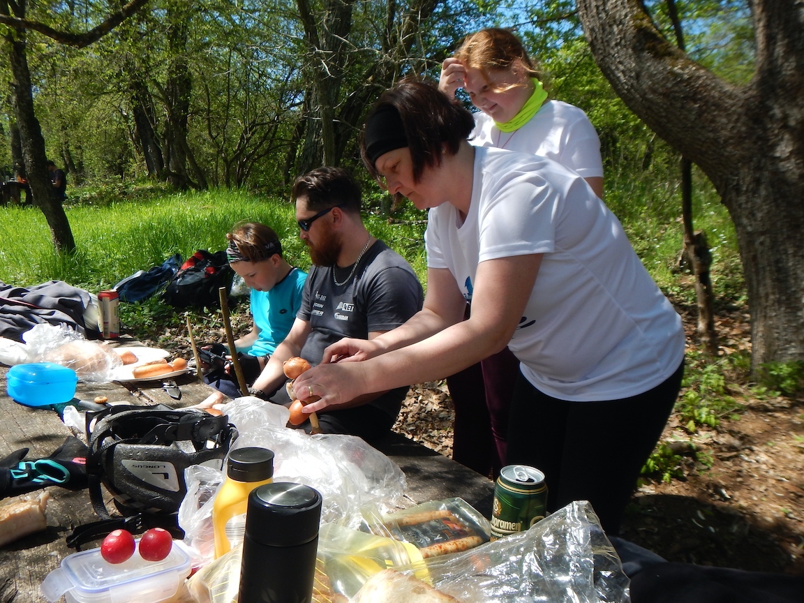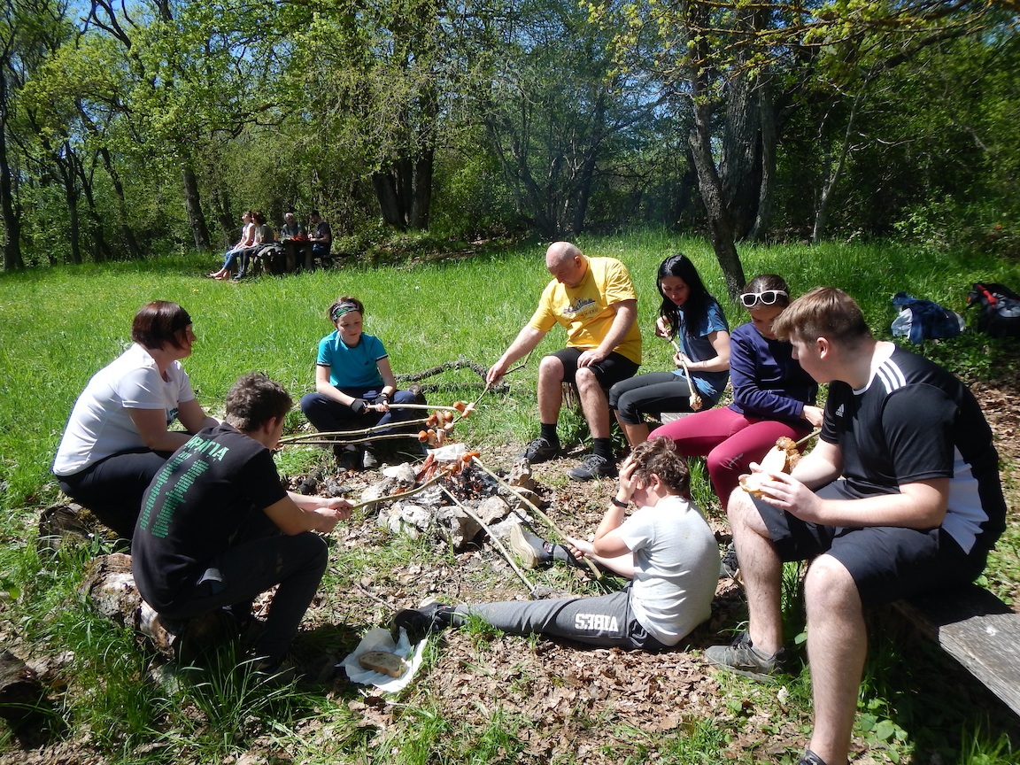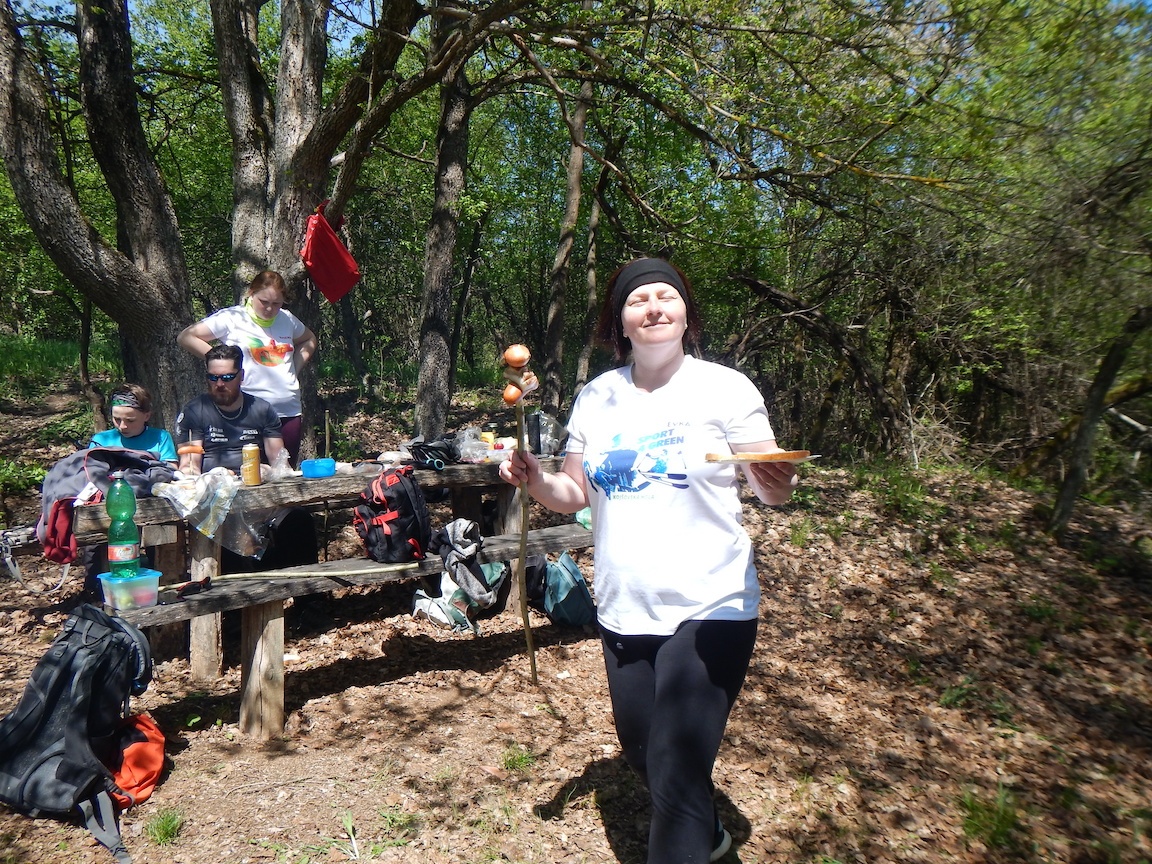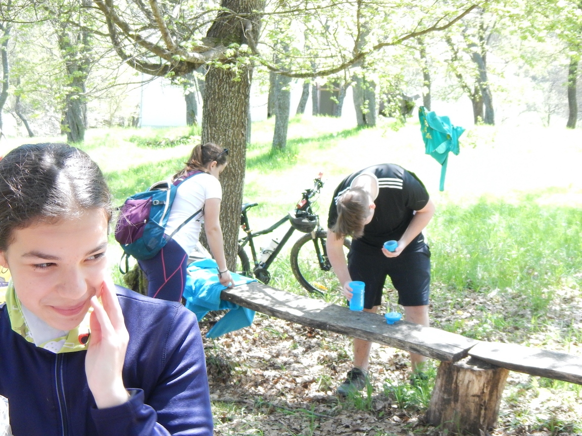 Stretko sme mali ráno o 9:00 v Hrhove pri prameni FEJ. Zišli sme sa v celkom peknom počte 11. Trasa viedla medzi jazerami, kde sa k nám pridali ešte 2. Odtiaľ sme pokračovali pozdĺž dolného vrchu skoro až po Hrušov, kde sme sa napojili na žltú cyklotrasu vedúcu na hranice s Maďarsko. Bol to jediný kopec počas našej túry. Po jeho zdolaní sme mali do Derenku už len kúsok. Po krátkom oboznámení sa s históriu sme sa vrhli na opekanie a relax. Keď už bol každý najedený, rozdelili sme sa do 2 skupín. Tá prvá ostala leňošiť v Derenku. No tá druhá akčnejšia sa vybrala objaviť zrúcaninu hradu Szádvár. Keď sme už všetko videli, dali sme si parádni zjazd z radu a vyzdvihli sme lenivcov v Derenku. Cestou domou sme ešte preverili naše technické zručnosti opravy defektu. Veľmi nám to nešlo, keďže defekt sme opravili až na 3 pokus. Ale na našu obhajobu, boli tam 3 diery. Deň sme ukončili zaslúženou kofolou a pivom v Hrhove.