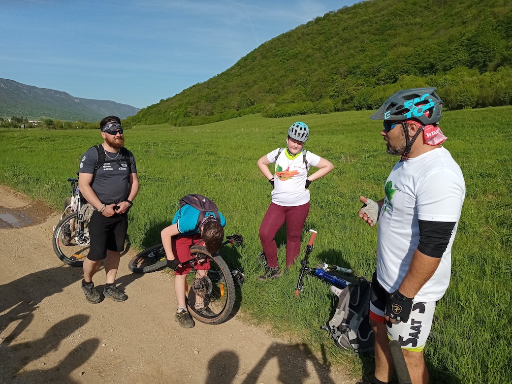 A találka reggel 9-kor volt betervezve a FEJ patak forrásnál Görgőn. Persze ahogy a Görgőeikhez illik, nem voltunk ott időben. Sebaj, azért szép számban összegyűltünk. 11-en el is indultunk a tavak között, ahol még 2-ten csatlakoztak hozzánk. Inned tovább folytattuk utunkat Körtvélyes felé, ahol csatlakoztunk a sárga bicajos útvonalra a határig. Ez volt az egyetlen komolyabb emelkedés a pályán. Szerencsésen el értük a határt, ahonnan Derenk már csak egy köpésre volt. Rövid ismerkedés után a Derenk múltjával, bele is vágtunk a szalonnasütésbe, no meg a pihenésbe. Kaja után 2 oszlott a csapat. Az első fele maradt lustálkodni Derenken. A másik aktívabb fele, elindult felfedezni a Szádvár romjait. Mikor már mindent megnéztünk, nyomtunk egy kisseb downhilt, és megálltunk lusta barátainkért Derenken. Az úton hazafelé még próbára tettük technikai tudásunkat, egy defekt javítással. Sajna csak harmadszorra sikerült megjavítani. De azért javunkra szóljon, hogy 3 lyuk volt a belsőben. A napot egy megérdemelt hideg csapolt kofolával meg sörrel zártuk.