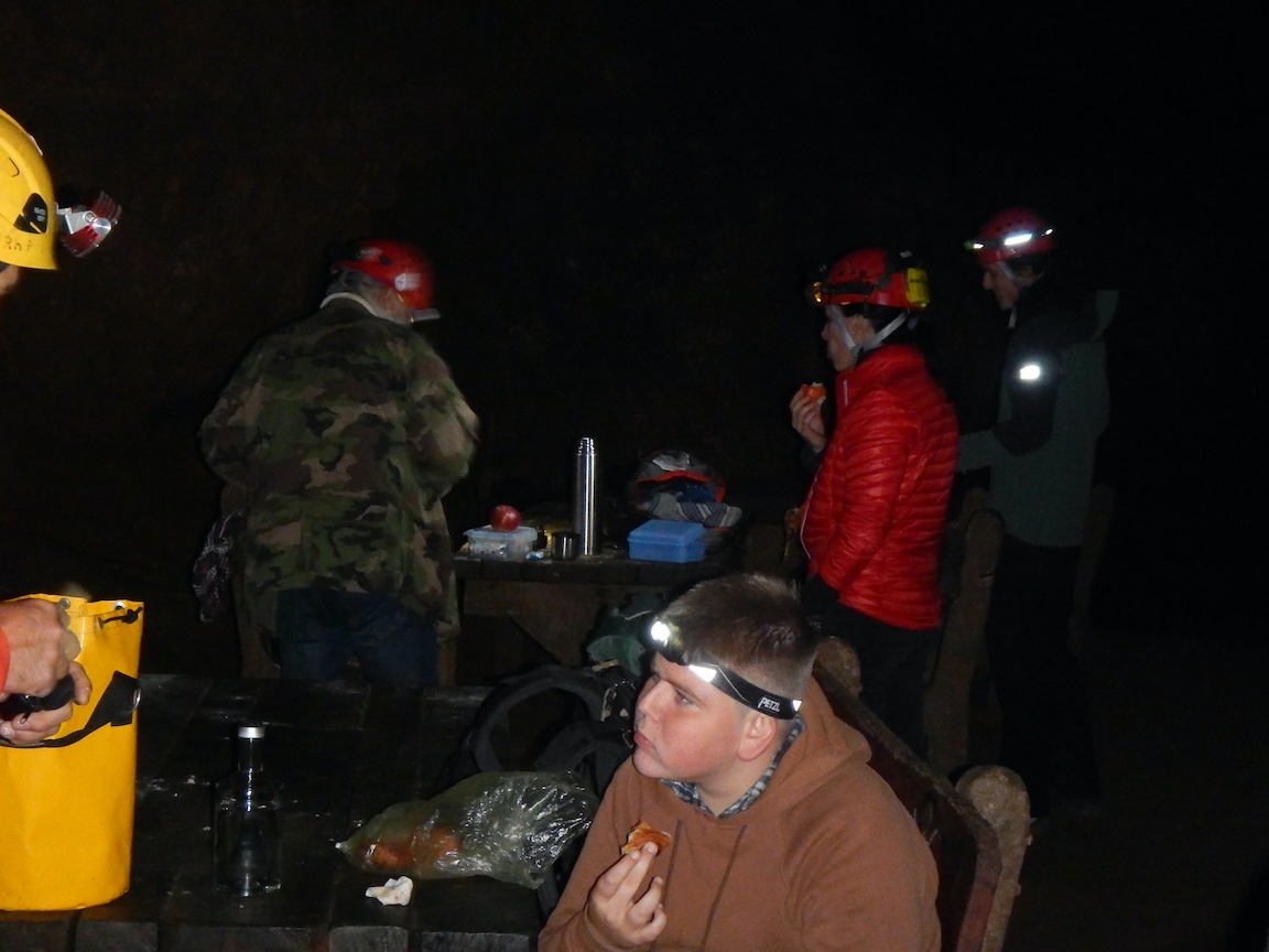Stretko sme mali ráno o 8:00 v Hrhove pri veľkej autobusovej zastávke. Zišli sme sa v trochu komornejšom počte 9. Prebehlo rozdelenie do áut a rýchlo sme sa presunuli do Aggteleku ku vchodu do jaskyne. Veľká časť posádky vystúpila a zvyšok presunul jedno z vozidiel do cieľa našej túry. Po návrate do Aggteleku sme sa vystrojili čelovkami a prieskum jaskyne sa mohol začať. Na úvod sme navštívili komerčnú časť jaskyne, kde nám vo veľkej koncertnej sále pustili aj hudbu s dych berúcou akustikou. Po krátkej prednáške v podaní Ferdinanda Kinyika (za samotnú možnosť návštevy jaskyne, môžeme vďačiť práve jemu) a poslednej možnosti navštíviť toaletu pred cca 5 hodinovou túrou, sa dobrodružstvo mohlo začať. Po krátkej chvíľke sa nám minula upravená cesta a z útrob jaskyne sa začali vynárať jedinečné výtvory, vo forme stalagtitov, stalagnitov a stalagnátov, aké dokáže vztvoriť len príroda. Vďaka menšiemu počtu zrážok sa nám naskytla možnosť navštíviť aj rameno názvom "RETEK ÁG", pomenované po tvare úkazov, ktoré výzorom pripomínali reťkovku. Táto časť jaskyne bola hádam tou najkrajšou. A aj keď bolo nutné na začiatku prekonať asi 10 metrov vodou zaliatej časti, kde tí, čo nemali gumáky, si zvolili možnosť prekonať prekážku naboso, môžeme skonštatovať, že sa to oplatilo. Je síce pravda, že niektorí sa rozhodli počkať pri vstupe do tejto časti jaskyne, ale snáď nabudúce budú mať možnosť zahliadnuť túto krásu aj oni. Kuriozitou pre nás bola aj obedná prestávka, ktorú sme mali približne v strede našej výpravy, hlboko v útrobách samotnej jaskyne. Na tento účel je tam vybudovaný priestor s lavicami a stolmi. Samotný priestor s nami zdieľali aj spiace netopiere a drobné živočíchy, ktoré prežívajú len vďaka omrvinkám, ktoré tam človek utrúsi. Prieskum jaskyne sme ukončili na druhom konci v obci Jósvafő, no cestou sme mali možnosť kochať sa ďalšou veľkou sieňou obrov ako aj miestom zvaním hvezdáreň. Po absolvovaní výpravy neostalo nič iné, iba vyzdvihnúť autá a celý nádherný deň sme zavŕšili prechádzkou v nádhernom parku pri jaskyni s morským okom.